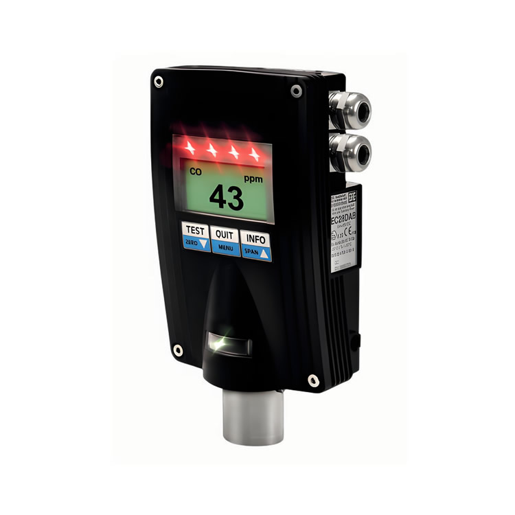 EC28 DAR 變送器具有 2.2 英寸 LC 顯示屏和三個控制按鈕。在正常作中,顯示屏顯示測量值或故障或警報信息。作參數(測量氣體、測量范圍、限值等)也可以使用直觀的控制按鈕訪問。EC28 DAR 具有高度可見的紅色報警 LED、一個響亮的集成蜂鳴器 (90 dB) 和一個額外的繼電器。這樣,本地和外部警報,例如閃光燈、蜂鳴器和信息標志,可以通過可選的警報變送器同時觸發。